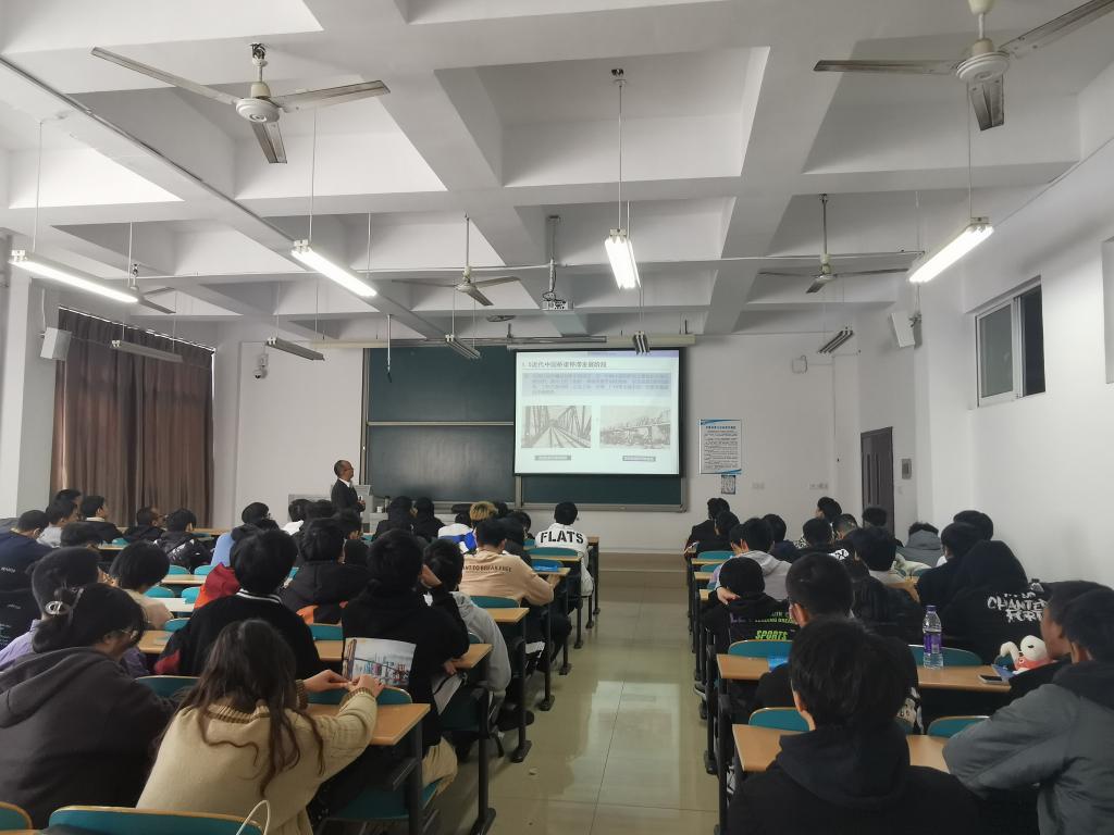 彭建新教授阐述了各个历史阶段桥梁建设所取得的主要成就及关键人物,以及对人类社会进步的巨大推动作用,特别是中华民族的贡献。讲座对现代桥梁的主要病害问题进行总结分析,介绍桥梁病害检测中的常用方法,并归纳桥梁发展趋势。他用生动形象的授课方式带领同学们体会了桥梁从古到今的奥妙,为同学们展示了一幅桥梁未来发展趋势的宏伟蓝图,给同学们留下了深刻的印象。