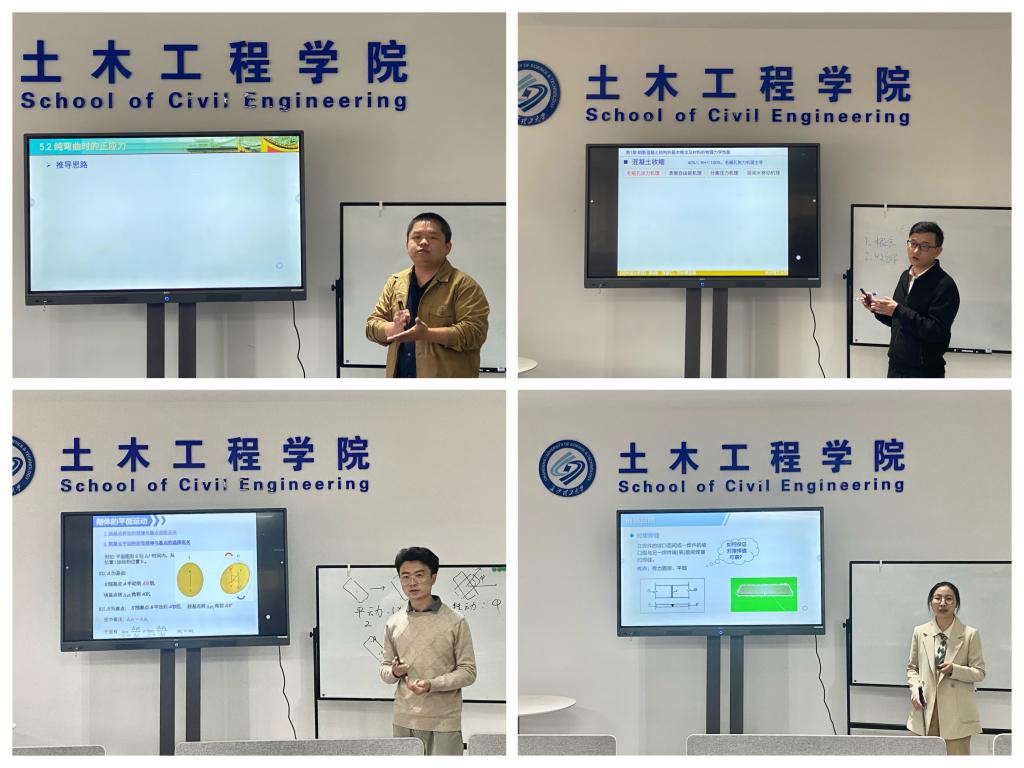 田湘、伍敏、李杨、王响军、陶昶、黄敦文、赖安迪、冷钰等8位新教师分别就拟开课程进行了试讲。所有老师教态认真、精神饱满、教学文档齐全、讲解思路清晰,表述准确。参加审查的专家对所有青年教师的试讲进行了精心点评,同时就教学内容的把握、教学方法的选择和教学手段的运用等提出了改进意见和建议。对如何把握重点和难点、如何融入课程思政元素、如何设计板书、如何进行师生互动等具体问题进行了耐心指导。