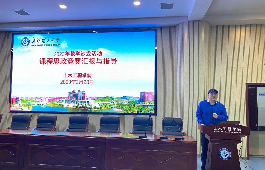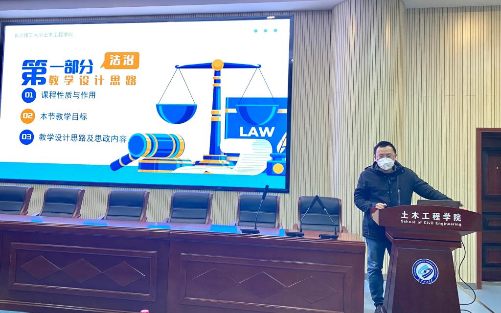 为落实立德树人根本任务,充分发挥课堂教学育人主阵地作用,不断提升教师课程思政教学能力。328日下午,土木工程学院在工科二号楼B302开展了以“课程思政教学竞赛展示与指导”为主题的教学沙龙活动。活动邀请了湖南师范大学易立文副教授、中南大学李烨副教授、评估中心贺晖副主任为点评专家。参赛课程教学团队成员和青年教师等30余人参加了活动,活动由陈伏彬副院长主持。