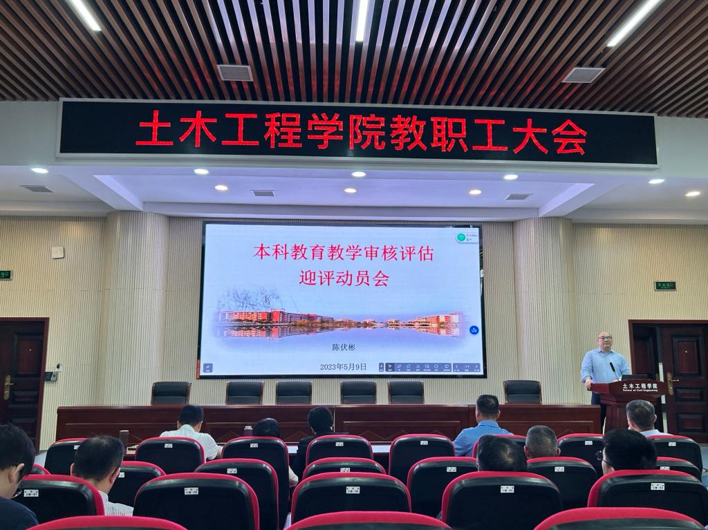 为贯彻落实学校本科教育教学审核评估工作,推动我院本科教育教学水平建设,5月9日下午,学院在工科二号楼B302召开本科教育教学审核评估迎评动员会,会议由陈伏彬副院长主持,全体教职工参加了会议。