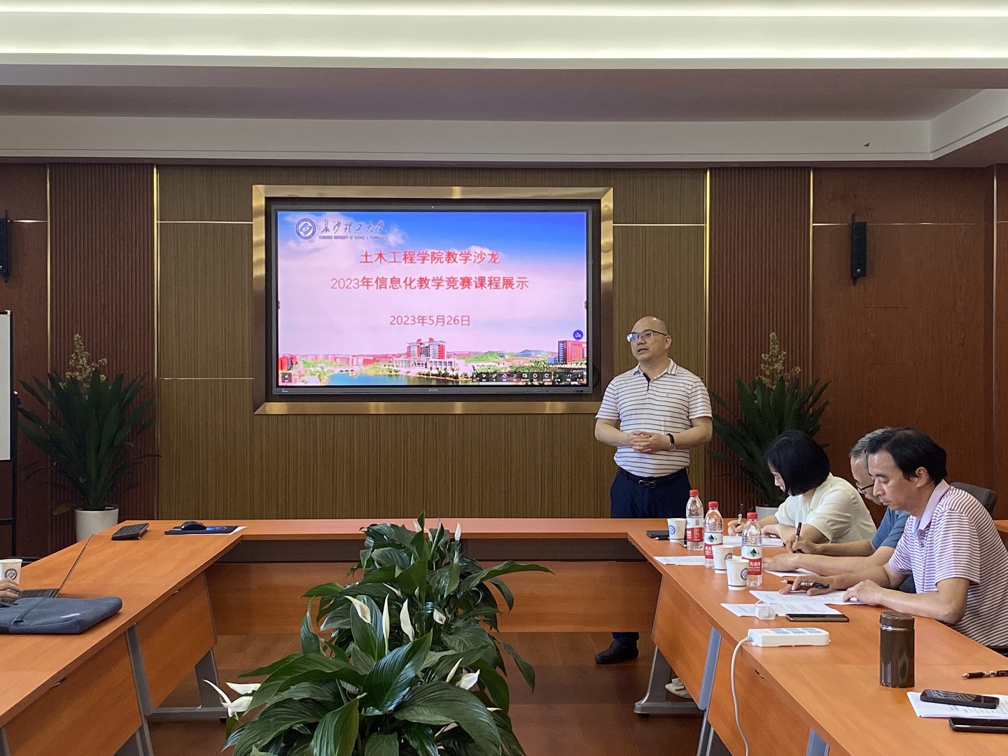 为进一步推动学院教师主动适应信息化、人工智能等新技术变革,积极有效开展教学教学,进一步提升土木工程学院青年教师的教学能力,5月26日下午,学院在工科二号楼A304举行了主题为“信息化教学竞赛课程展示”的教学沙龙活动。特邀力学系主任彭旭龙和学院本科督导刘建生和陈历强担任点评专家,活动由学院副院长陈伏彬主持。