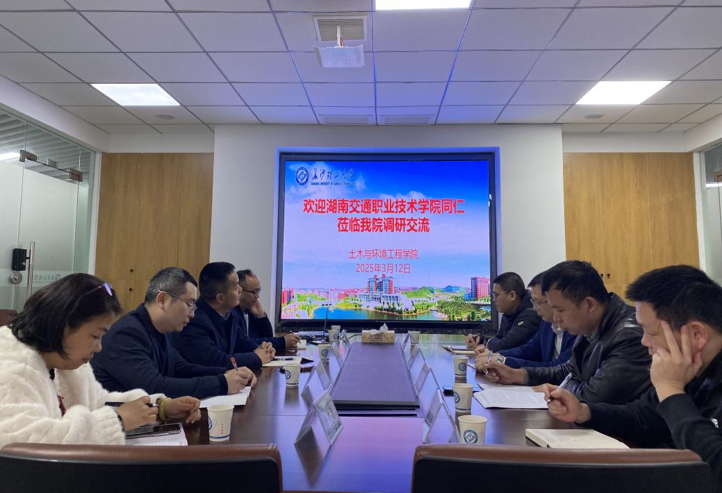 3月12日上午,湖南交通职业技术学院路桥工程学院院长彭东黎等一行4人来土木与环境工程学院调研土木工程专业本科生人才培养情况。副院长付果、桥梁系主任彭建新、陈卓异、徐晓霞等老师参与调研交流。