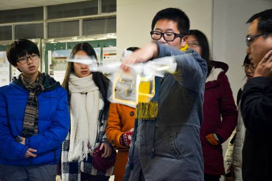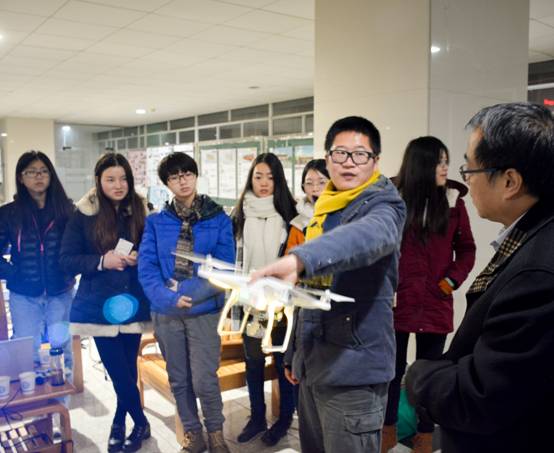问答环节很快就变成了组团聊天,同学们围绕在晟龙和他的无人机旁边,追问着很多细节和技术问题,交换着联系方式,展开了热烈和广泛的交流。