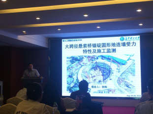 来自上海、天津、重庆、广西等地的140余名专家学者出席了本次论坛。在土木与建筑学院副院长王桂尧教授的带领下,我院周德泉教授、张军教授、柳厚祥教授、陈文胜教授、贺炜副教授、陈洁金博士、曾铃博士、尹平保博士以及部分岩土工程专业研究生参加了此次论坛。贺炜副教授代表LETOU官网做了“大跨径悬索桥锚碇圆形地连墙受力特性及施工监测”的专题报告。