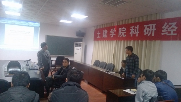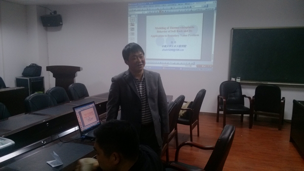 20121116下午,中南大学土木工程学院岩土工程系张升副教授在工科二号楼A502教室为研究生做了一场题为MODELING OF THERMO-VISCOPLASTIC BEHAVIOR OF SOFT ROCK AND ITS APPLICATION TO BOUNDARY VALUE PROBLEM的主题报告,副院长田仲初教授,院长助理贺炜副教授及研究生共80余人参加了该次讲座。