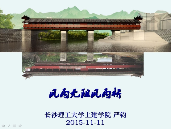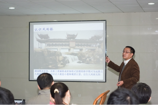 桥面上盖廊屋,集桥、亭、廊三者为一体的特殊桥梁就是风雨桥,又叫廊桥、亭桥、花桥、福桥、虹桥、蜈蚣桥等,它既是建筑,也是桥梁。湖南目前现存风雨桥239座,湖南风雨桥在建筑造型、结构运用、文化内涵方面很有特色。上世纪中期人们提到风雨桥就认为是侗族风雨桥,其实这种观念是比较片面的。事实上,根据调研,资水流域的风雨桥数量超过了沅水流域的侗族风雨桥,而且质量上也并不逊色。严教授介绍:他们基于Google Earth(GE),已经初步建立了湖南风雨桥分布数据库,目前测绘工作正在不断的推进,一些研究工作在逐步进行,成果在不断地整理之中。