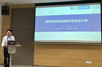 我院力学系赵磊、赖安迪老师带领研究生参加了此次会议。在超材料暨超结构力学分会场上,赖安迪老师作了题为奇弹性结构的稳定性与动力学的报告,介绍了奇弹性理论和非互易结构力学的研究进展。在多场耦合与智能结构力学分会场上,研究生代表周碧莹作了题为任意梯度分布各向异性功能梯度空心圆柱的瞬态热弹性分析报告,并与参会的专家和学者进行了深入的交流。
