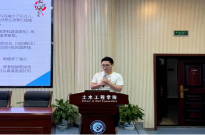 会议伊始,蒋友宝从“为什么考研”“土木工程学院的现状”“研招相关政策”三个方面展开分享。蒋友宝指出,选择考研是建设教育强国和实现国家教育现代化的需要、落实湖南省“三高四新”战略定位和使命任务的需要和落实学校“双主体”协同发展的需要。蒋友宝从学院发展历程、研究生培养体系、师资队伍、科研成果、招生就业、社团活动等方面介绍了学院情况。最后,蒋友宝介绍了学院研究生奖助学金体系和招生政策。