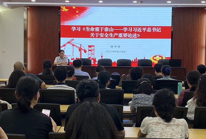 为学习贯彻习近平总书记关于安全生产重要论述精神,牢固树立安全发展理念,6月25日下午,图书馆组织全体职工集中学习观看了《生命重于泰山——学习习近平总书记关于安全生产重要论述》电视专题片。馆长陈寿奇主持此次学习活动。
