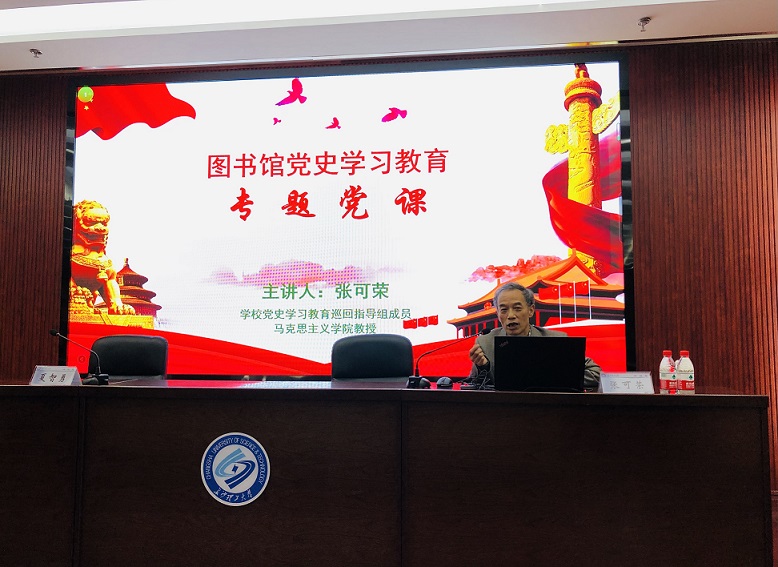 4月16日下午,图书馆在云塘图书馆B-102云影文化传播中心举办专题党课,特邀学校党史学习教育巡回指导组成员、马克思主义学院张可荣教授为全体职工上党课,讲座由图书馆党总支书记夏智勇主持。