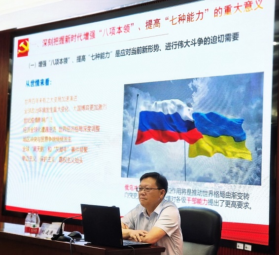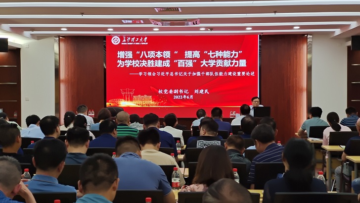 6月17日下午,校党委副书记刘建民在图书馆云影文化传播中心为图书馆和后勤服务中心党员职工开展以《增强“八项本领”、提高“七种能力”,为学校决胜建成“百强”大学贡献力量》的理论宣讲。宣讲会由后勤服务保障中心党委书记王明彦主持。