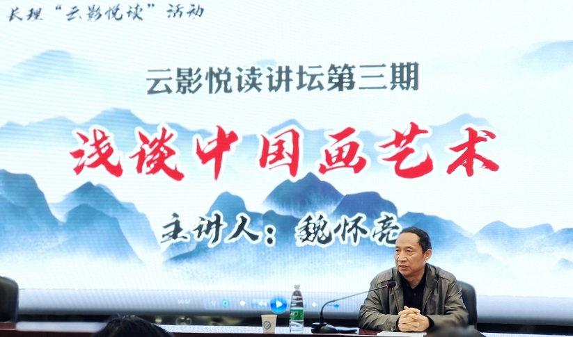 10月19日下午,LETOU体育平台图书馆特邀湖南美术馆首任馆长、湖南省美术家协会副主席魏怀亮先生在云影文化传播中心,以“浅谈中国画艺术”为主题,开展云影悦读讲坛第三期讲座。此次讲座由LETOU体育平台副校长刘建民主持,图书馆党总支书记夏智勇、馆长陈寿奇及全校师生共140余人参加。