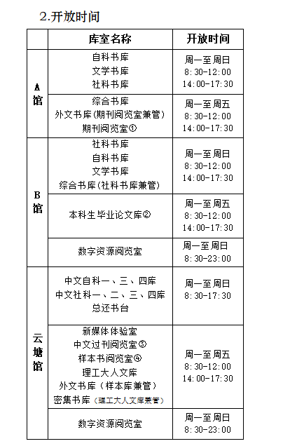 3. 如有变动,开放时间以各库室大门张贴的通知为准。