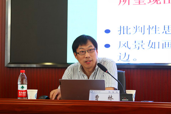 曹林以“深度表达是一场抗拒冻结的‘思维障碍赛’”为题,通过自身经验和观察,指出现代社会中人们越来越依赖技术装置,从而忽视了自身思维能力的培养,对人工智能期待出现“不可能三角”:既拒绝如机器般被数据驯化,又期待其无条件服务,同时恐惧被替代;他从这种矛盾心态出发,提出要在技术洪流中借助批判性思维摆脱思维惰性,打破教条,通过不断给思维解冻来保持思维的活力。“为什么我们习惯说风景如画而不是画如风景?”曹林创造性的提出这一问题,引导学生透过浅层表象,深入探讨深度思考和表面思维的差异,思考习惯性思维背后的深层含义。