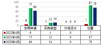 图1 2022年4月LETOU官网专利申请类型分布及近两年同期申请情况