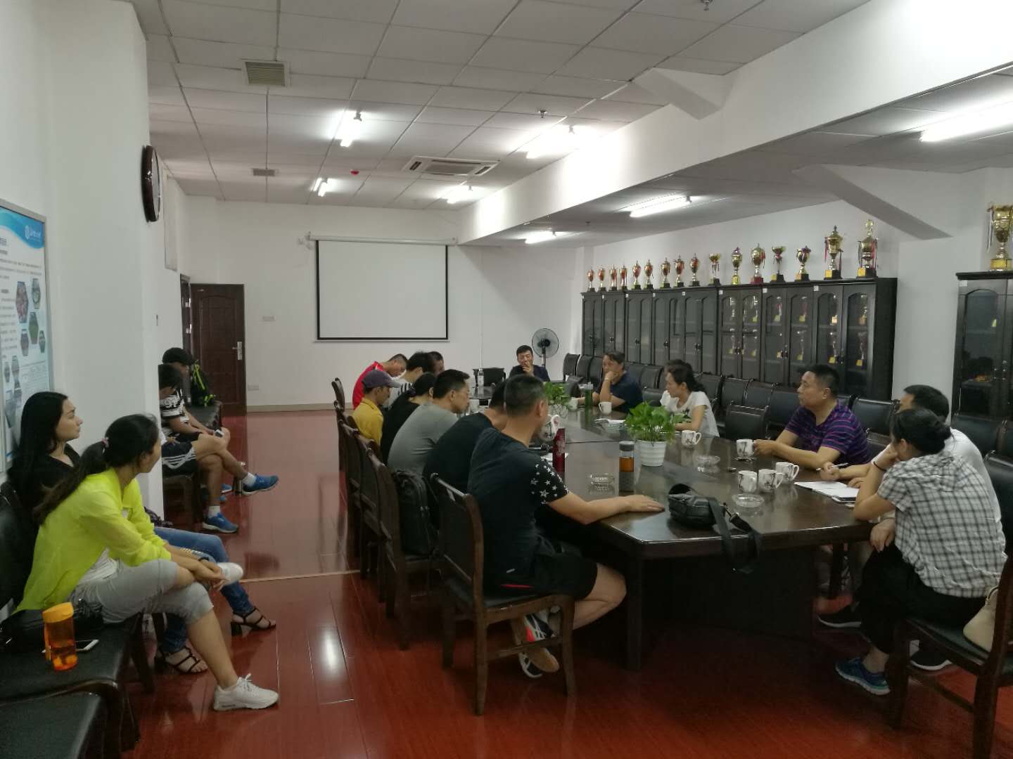 潘红玲首先传达了“湖南省第十一届大学生运动会科学大会征集方案的通知”,号召全体老师、科研骨干积极准备,踊跃参与,争取获奖。针对科研工作现状,潘红玲提出了体育学院振兴科研工作的构想和举措:一是完善科研管理制度,规范科研行为,加大奖励力度;二是组织本年度项目申报和在研项目实施工作;三是组建科研活动小组,推行科研读书报告会,营造科研氛围;四是采取 “走出去”与“请进来”相结合的方式,加强学术交流,夯实科研基础,提升科研水平。