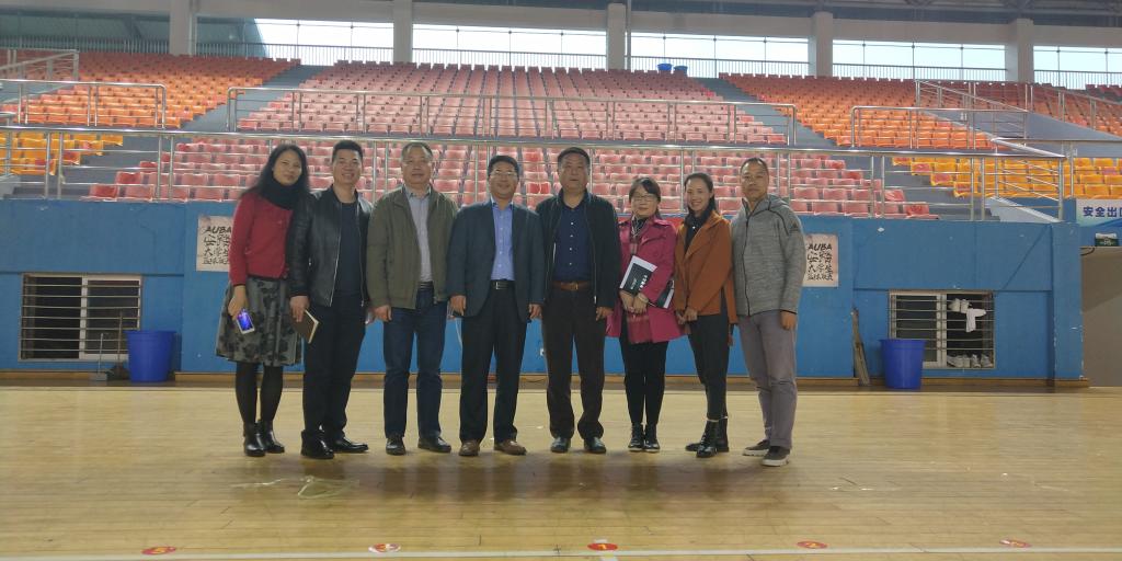 校长曹一家在院领导班子的陪同下先实地考察了体育场馆设施。仔细了解体育场馆的建设及课程设置情况。