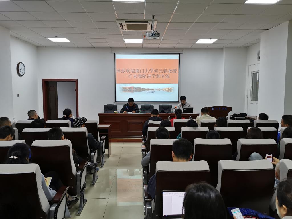 2019年10月17日上午8:30,体育学院邀请了厦门大学体育教学部副主任何元春教授在云塘体育馆报告厅作了一场学术讲座。体育学院院长张恳主持并致欢迎辞,全体教师参加了本次会议。
