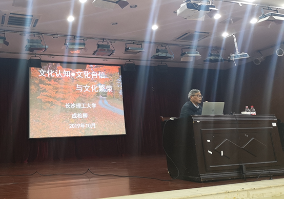 成松柳从文化认知的角度出发,以三个问题引入宣讲:1.没有清楚的文化认知,文化自信,自信在何处?文化又如何繁荣?2.没有清醒的文化认知,中华文化和世界的对话,在什么样的平台展开?3.面对不同文明的冲突,我们怎样坚持和展开平等的文化对话?围绕文化定义、文化认知、文化自信与文化繁荣三个方面展开引导大家进行深入的思考。成松柳指出文化的中心位置是人,学习是儒家经典中最温暖的字眼,研究和建设文化必须关注人类生活。文化自信应该体现在五个方面:一要意识到文化传承的重要性;二要努力创造开放对话平台和环境;三要勇于在不同文化、信仰和学说之间,相互讨论与切磋;四要对文化资源进行创意提升,一定要树立明确的保护意识,强调保护是第一位的;五要注意用文化引领产业的发展,不能让文化仅仅成为科技与经济的附庸。他告诫大家要认识中华文化在世界体系中的位置、要认识中华文化对国家发展的影响,不要搞“万国衣冠拜冕旒”式的文化繁荣,而要以学术的态度对待不同文化和文化资源。