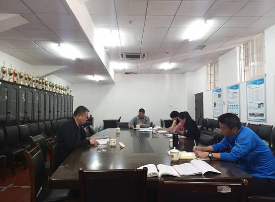2019年11月12日下午14:00,体育学院党政班子成员在云塘校区体育馆会议室就对照党章党规找差距专题开展了学习研讨,重点对照党章、《中国共产党廉洁自律准则》、《中国共产党纪律处分条例》和《关于新形势下党内政治生活的若干准则》学习检查。