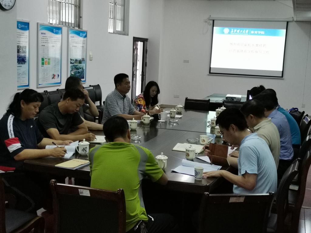 张恳首先对体育学院近几年来学科建设发展情况做了简要介绍,对学校给予体育学院学科建设发展的关心和帮助表示衷心的感谢!潘红玲重点介绍了体育学院近几年科研发展情况,总结了2018年以来在科研参与人数、省级课题立项、国社项目新突破等方面所取得的进步,分析了学院科研工作中存在的主要问题,并就如何提高我院科研水平提出了具体思路。社科处、科研部领导先后发言,给体育学院科研发展提出了宝贵意见。