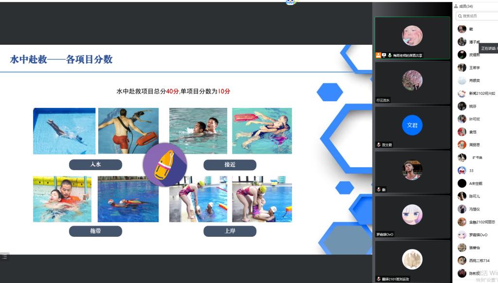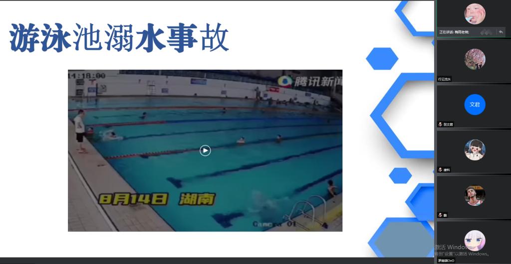 为倡导学生积极参加游泳健身活动,提高学生对游泳救生安全的意识,鼓励更多学生学会游泳学会救生。12月6日14:30,体育学院梅雨老师在腾讯会议线上举办“论游泳救生的重要性”主题知识讲座。本次讲座特别邀请了体育学院游泳队教练李立平老师,与游泳协会成员及游泳爱好者等五十余人参加本次讲座。