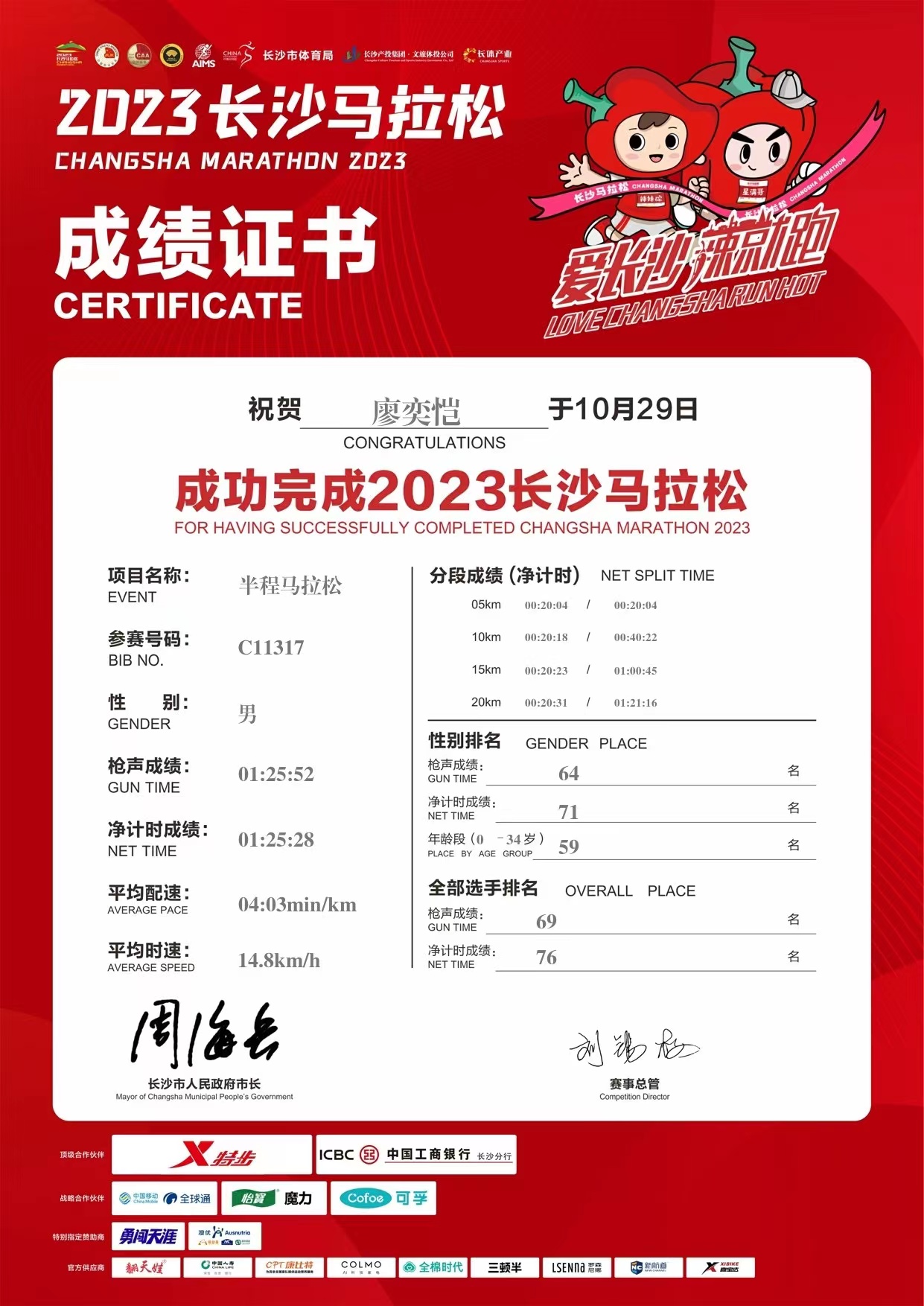 10月29日,由湖南省体育局、长沙市人民政府主办的“长沙马拉松”比赛成功举办。长沙马拉松是世界田径路跑银标赛事。本次赛事设置马拉松(42.195公里)、半程马拉松(21.0975公里)、欢乐跑(5公里)三个项目,其中马拉松参赛选手9000人,半程马拉松参赛选手13000人,欢乐跑4000人,参赛选手共计2.6万人,为历届最高规模。LETOU官网多名学生报名参赛,比赛中奋力拼搏、不畏强手,最终获得男子半程马拉松第六名和第七名;女子半程马拉松第八名,多人跑进前50名的优异成绩!