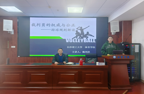 为了深入推动排球运动在校园内的普及与发展,进一步提升学生群体的执裁水平,2024年3月19日下午2点,体育学院魏利洪老师在云塘体育馆多功能教室A-304举办了“裁判员的权威与公正——排球规则解读与判罚实践”的知识讲座。校排球队王正教练以及排球协会的成员和排球爱好者,共50余人参与了此次讲座。