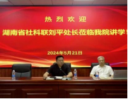 2024 年 5 月 21 日下午,湖南省社科联二级巡视员刘平处长应邀到校体育学院在云塘校区体育馆学术报告厅为学院师生带来了旨在提升体育学院课题申报以及研究水平的学术讲座本次讲座由院长张恳教授主持,学院党总书记李龙,副院长潘红玲、谭志华等学院教师以及全体研究生聆听了本次讲座