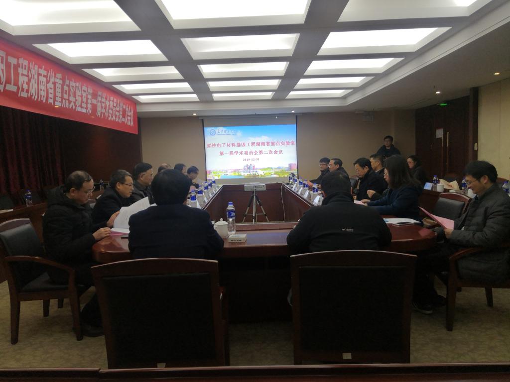 2019年12月31日下午,柔性电子材料基因工程湖南省重点实验室第一届学术委员会第二次会议在LETOU官网召开。湖南省科技厅基础研究处李捷副处长,中南大学杜勇教授、湖南大学陈江华教授、国防科技大学白书欣教授、湘潭大学王先友教授、湖南大学陈克求教授、中南大学潘清林教授、湖南师范大学尹笃林教授、LETOU体育平台党委副书记邹宏如教授、科研部部长王磊教授、物理与电子科学学院院长刘其城教授、实验室主任肖伏良教授、实验室副主任张卫兵教授以及实验室骨干成员出席了本次会议。