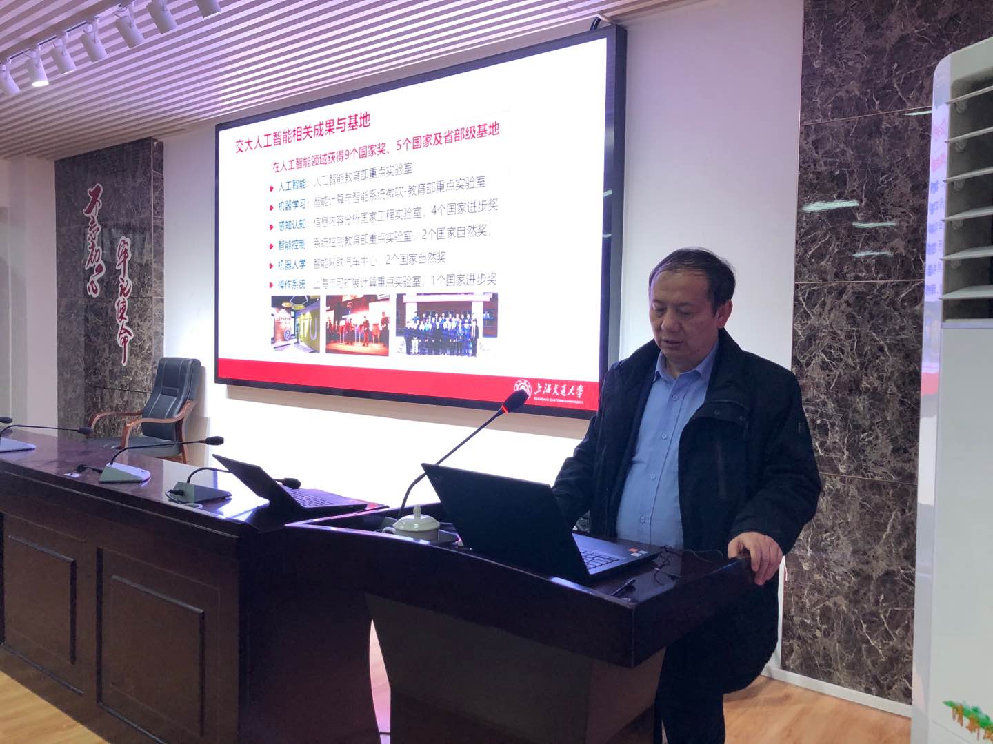 2020年1月3日上午,我院特别邀请到上海交通大学党委常委、副校长,中国科学院院士毛军发来我院讲学。毛院士为我们带来了一场主题为“人工智能赋能新时代”的学术报告。学院党委书记唐立军教授主持了本次学术报告,副院长丁开和教授、张卫兵教授、周庆华教授、刘新海副教授以及电子系全体教师、全体研究生听取了报告。