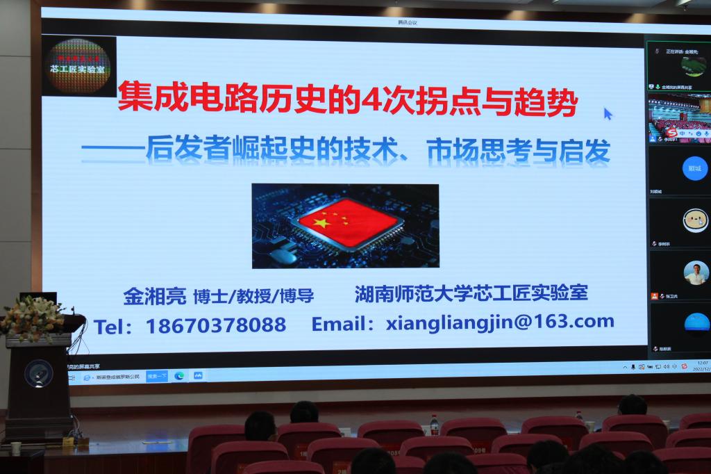 国防科学技术大学秦石乔教授、微电子所所长郭阳教授及陈跃跃教授,湖南大学半导体学院(集成电路学院)院长廖蕾教授,中南大学物理与电子学院院长孙克辉教授及孙佳教授,湖南师范大学物理与电子科学学院副院长欧阳钢教授及金湘亮教授、陈明星教授,湘潭大学自动化与电子信息学院院长姚志强教授、湘潭大学物理与光电工程学院副院长毛宇亮教授,吉首大学物理与机电工程学院院长黄勇刚教授及邓科教授、湖南文理学院数理学院院长杨江河教授以及湖南科技大学物理与电子科学学院副院长许英教授线上参加了论坛开幕式。LETOU官网研究生院副院长田上、物理与电子科学学院领导、老师、研究生和本科生共计200余人参加开幕式。
