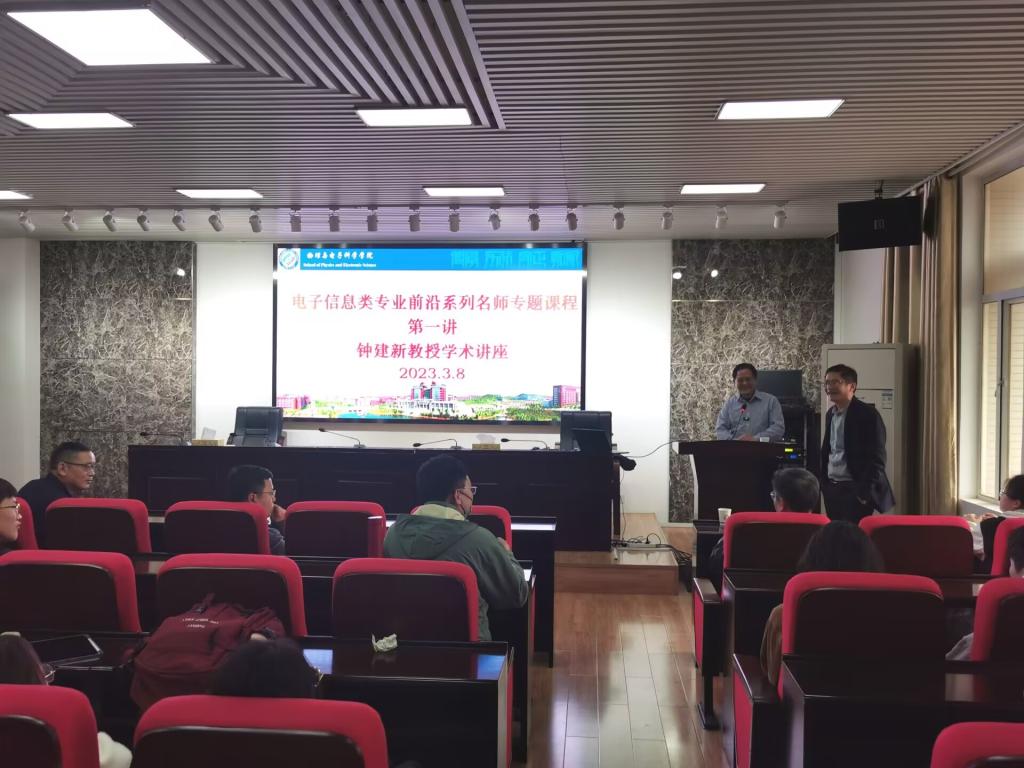 物理与电子科学学院“专业前沿系列名师专题课”于3月8日15点30分在云塘校区理科楼B-413拉开序幕。湘潭大学钟建新教授应邀来LETOU官网作为课程第一讲的主讲人。学院党委书记张国强、副院长(主持工作)张卫兵、副院长范志强、校督导团团长唐立军教授,与电子系的师生们共计120余人一起聆听了专题课程。专题课由物电学院副院长(主持工作)张卫兵主持。