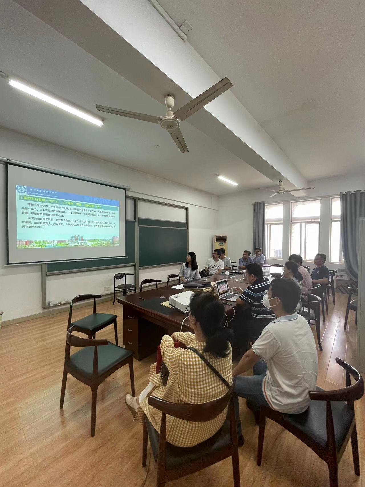 5月30日下午,按照物理与电子科学学院党委的要求,物理党支部全体党员在系办公室开展了“以学增智,提高担当本领”为主题的党日活动。活动由支部组织委员朱致英同志主持。学院党委委员、纪委书记、副院长范志强同志为支部全体党员作了题为《坚持科技是第一生产力,人才是第一资源,创新是第一动力——着力加强基础学科拔尖人才培养》党课。