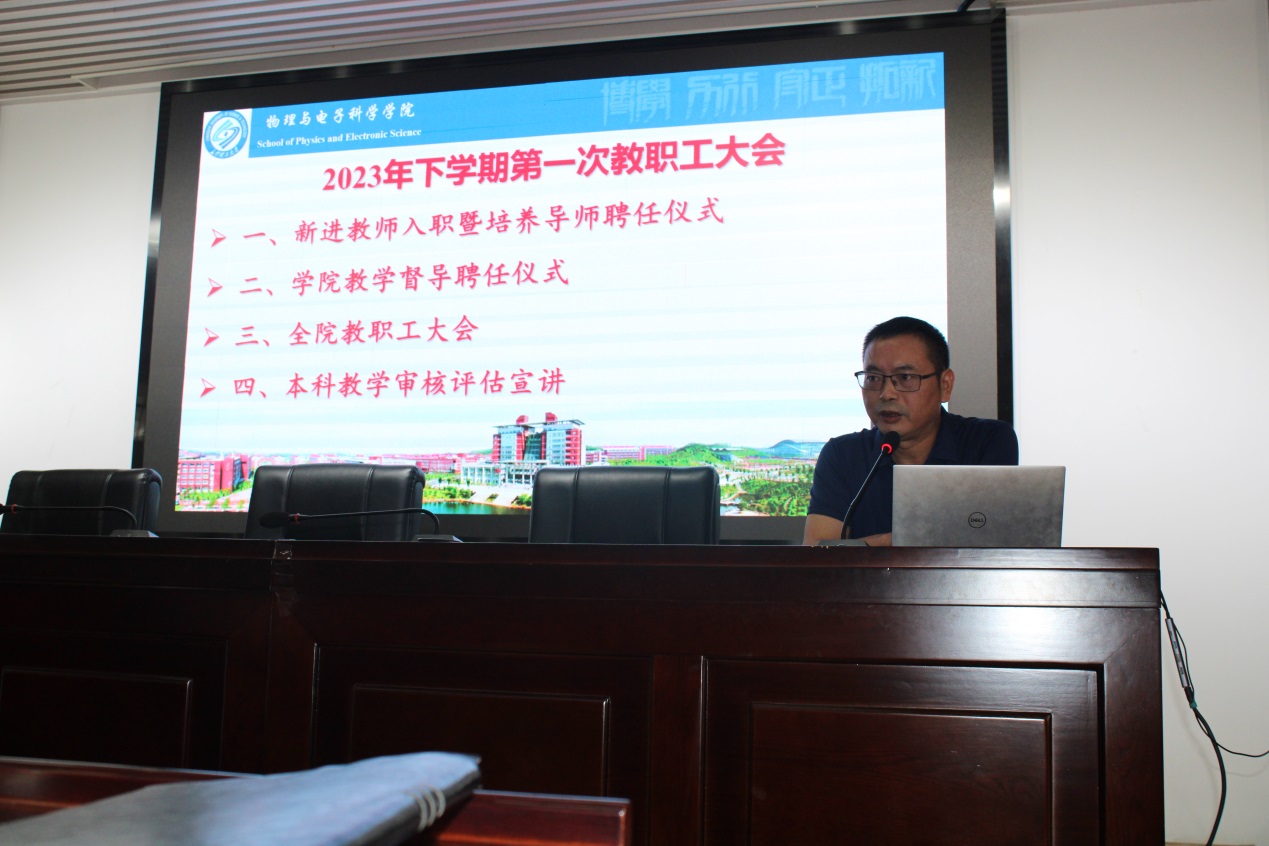 9月5日下午,物电学院组织召开了新学期的第一次教职工大会,党委书记张国强主持会议。