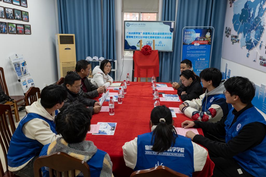 2023年12月11日下午,物电学院举行了科普育人实践基地揭牌仪式暨“小小科学家”团支部成立大会。活动在云塘校区综合实验楼A406举行,物电学院党委书记张国强、校团委副书记杨晨、物电学院副院长范志强、学院实验中心主任伍丹出席,会议由物电学院党委副书记宋国宁主持。