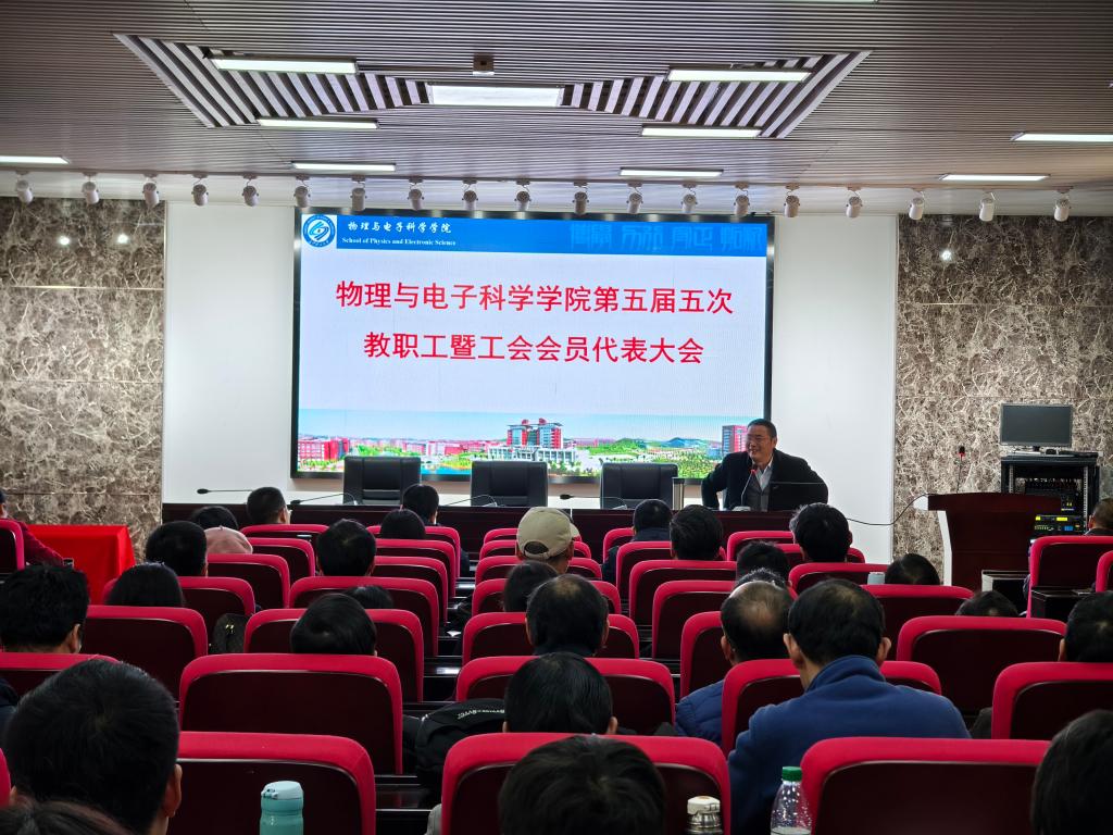 2025年1月14日下午,物电学院在理科楼B413会议室召开了第五届五次教职工暨工会会员大会,会议由学院常务副院长邓科主持,学院党委书记张国强作重要发言。