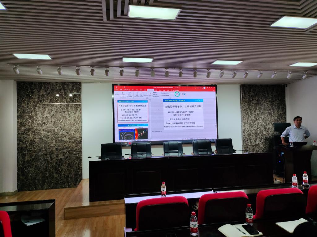 袁志刚教授是武汉大学珞珈学者特聘教授,国家杰出青年科学基金获得者,教育部新世纪优秀人才。现任武汉大学电子信息学院教授委员会主席,兼任中国空间科学学会理事、空间物理专业委员会副主任、中国电波传播学会委员、“电波环境特性及模化技术”国家重点实验室学术委员会委员、《Earth and Planetary Physics》编委、《电波科学学报》编委。袁教授在报告中结合理论推导、数值模拟和卫星观测,介绍了内磁层中二次等离子体谐波研究的新进展。报告结束后,袁教授还与现场师生进行了交流互动,气氛热烈,大家深感获益匪浅。