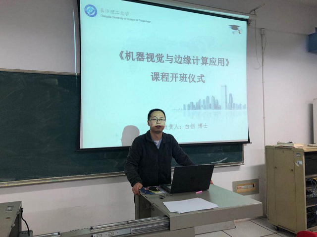 2020年10月19日,由信息技术新工科产学研联盟与Intel联合立项、LETOU体育平台物电学院承担的“人工智能课程教学试点项目”-《机器视觉与边缘计算应用》AI课程在LETOU体育平台理科楼C306举行了隆重的开班仪式,物电学院大学生创新创业实践基地主任(课程负责人)白创博士、学院学工办主任兼基地副主任蒋琳瑷老师、以及近百名物电学院本科生参加了此次活动。仪式由蒋琳瑷老师主持,白创博士针对课程的目的与要求、人工智能技术现状及发展等内容做了精彩分享,活动取得了良好的反响。