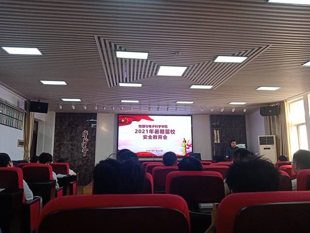 暑期将至,为保证物电学院2021年暑期留校学生在学校度过一个安全、愉快、有意义的假期。2021年7月13日,物电学院在理科楼b413组织召开物电学院2021年本科生暑期留校安全教育大会,18、19及20级全体留校同学参与会议。