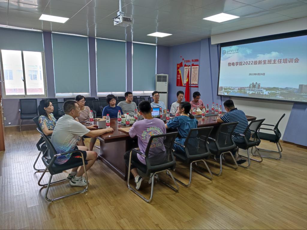 为进一步加强班主任队伍建设,推进“三全育人”走深走实,8月26日下午物电学院2022级新生班主任培训会于理科楼C511召开。院党委副书记宋国宁、全体22级新生班主任及新生辅导员参加了此次会议,会议由党委副书记宋国宁主持。会上,宋国宁对22级新生情况做了介绍,对班主任工作提出了要求。建议班主任从纪律问题、安全问题、学业规划及心理健康等几个方面开展新生教育工作,引导学生健康成长。最后对班主任存在的疑问进行解答。此次培训有助于帮助新生班主任在上岗前了解工作职责、熟悉工作内容,为做好2022级新生管理工作打下了坚实基础。