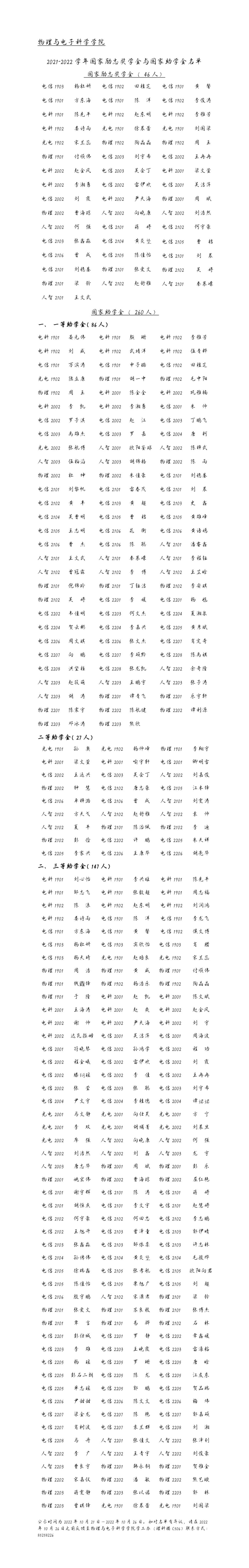 物理与电子科学学院 2021-2022学年国家励志奖学金与国家助学金名单公示