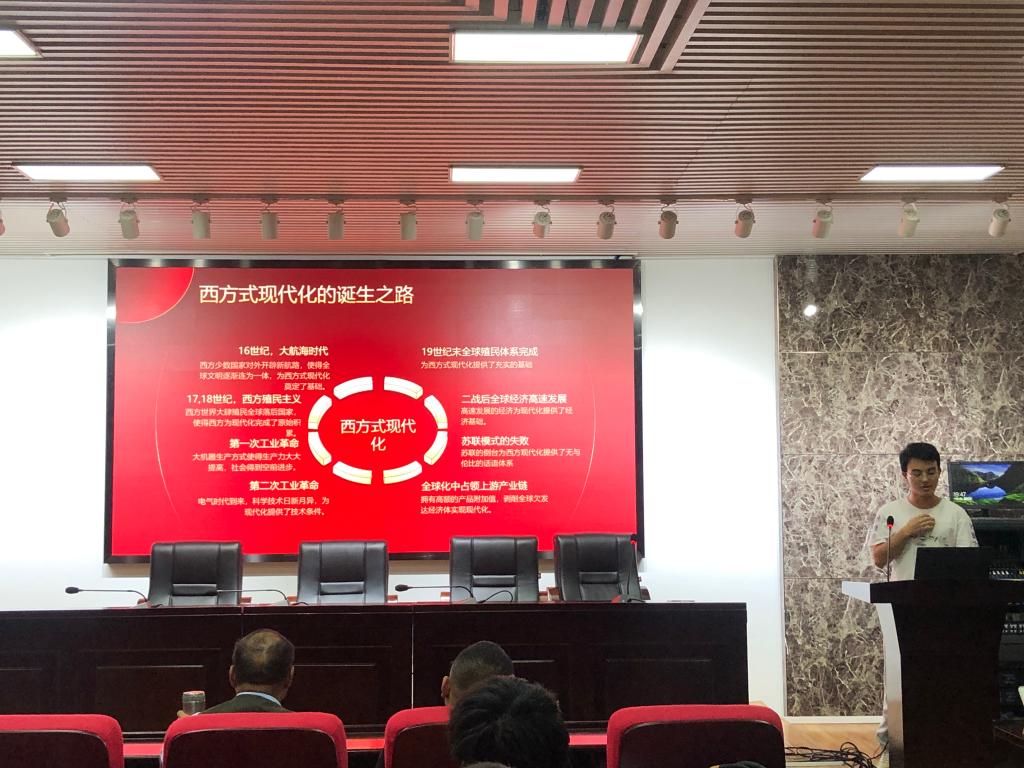 接着,支部进行了微党课初赛,八位党员依次进行了微党课授课,其中邵俊同学以中国式的现代化作为微党课主题,介绍了中国特色社会主义现代化的由来、何为中国式现代化、中西方现代化的对比,以及对中国式现代化提出的意义。支部推荐闫林楠、杨亚鑫、邵俊参加学院微党课决赛。