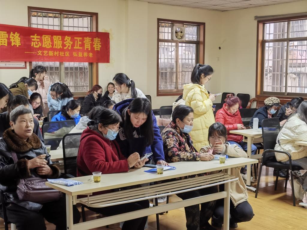 此次活动由物电学院团委学生会青年志愿者协会负责开展,旨在引导广大同学学习雷锋精神,积极投身志愿活动,让雷锋精神在新时代传承下去。活动前期,青志协对22级的同学进行了招募,并通过线上培训的方式,让志愿者了解该活动。活动形式包括,才艺表演,一对一社保认证,手机操作教学和预防诈骗课堂。活动期间,老人们积极配合,志愿者们耐心教学,其乐融融。