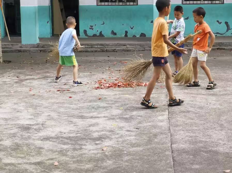 清晨的阳光照耀着小朋友们的笑脸,校园里弥漫着劳动的气息。在这个美丽的早晨,小朋友们表现出了勤劳和自觉的品质。他们抵达校园后,第一时间投入到了清扫校园的任务中,他们用心地清理着落叶,让自己能够在一个洁净的校园里学习。