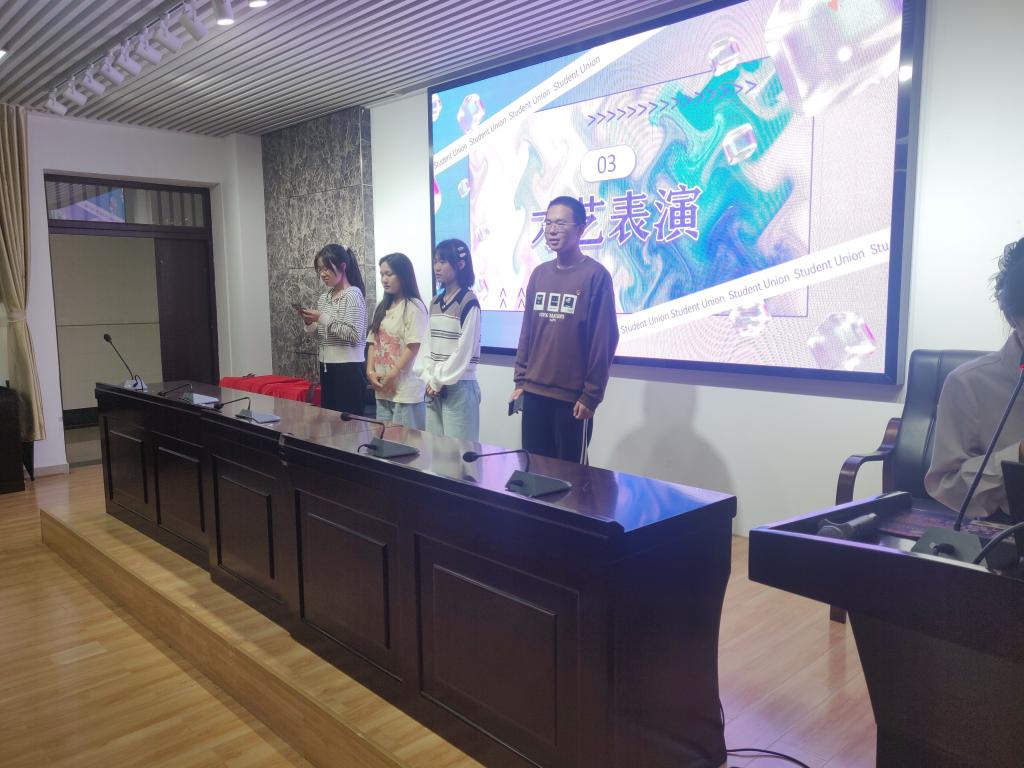 会议伊始,赵俊程老师介绍了团委学生会的组织架构、工作性质以及学生干部培养体系等,并嘱托成员们各类注意事项。随后,各部门进行了部门介绍和节目表演,详细介绍了各部门的工作职能并且通过多种多样的精彩节目展示出了各部门的积极向上的精神风貌以及蓬勃的活力。