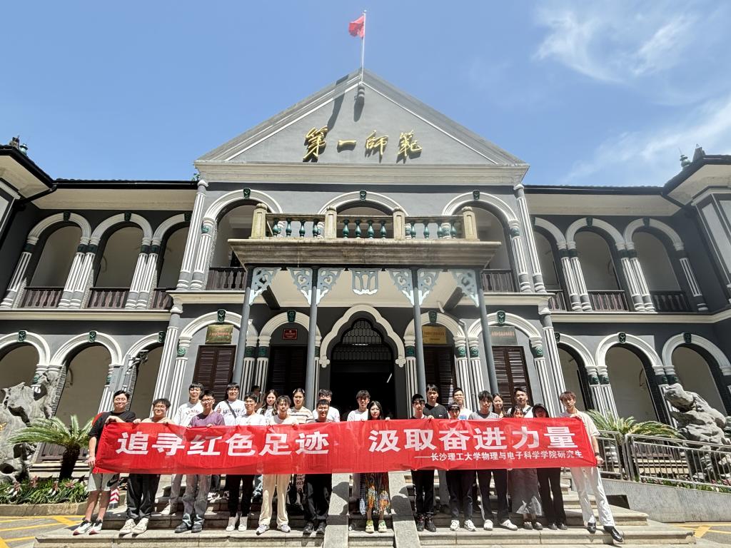 为追寻习近平总书记在考察足迹,深入学习贯彻习近平总书记考察湖南重要讲话和指示精神,进一步引导研究生弘扬优良传统,传承红色基因,5月14日下午,物电学院研究生赴湖南第一师范学院开展“追寻红色足迹,汲取奋进力量”主题教育实践活动。本次活动由物电学院研究生会发起,全院研究生自愿报名参加。
