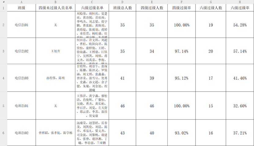 2024年3月,院分团委学习部对全院学生进行了四六级过级分析,此次分析主要是对全体物电学院的班级关于四级六级的过级率进行了统计与比较。