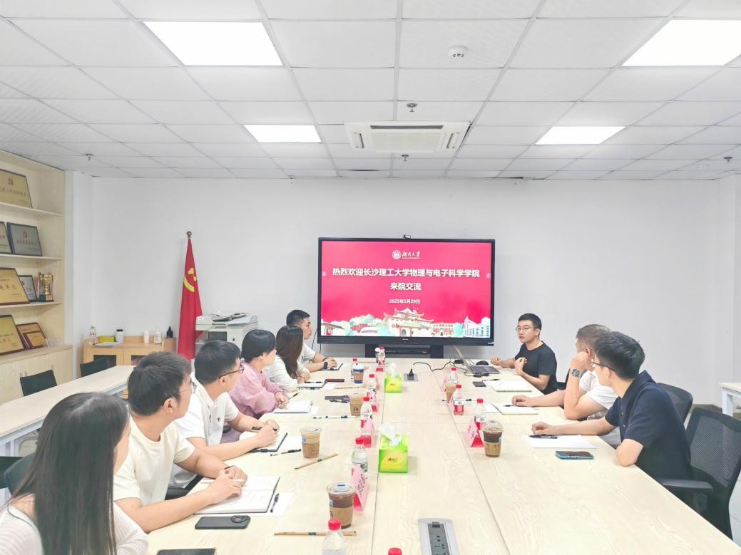 5月30日上午,我院党委副书记叶正芳带领全体学工团队赴湖南大学物理与微电子科学学院(以下简称“湖大物电院”)开展交流研讨,湖大物电院党委副书记田锐出席交流会,辅导员李远庆、刘宇参加交流会。