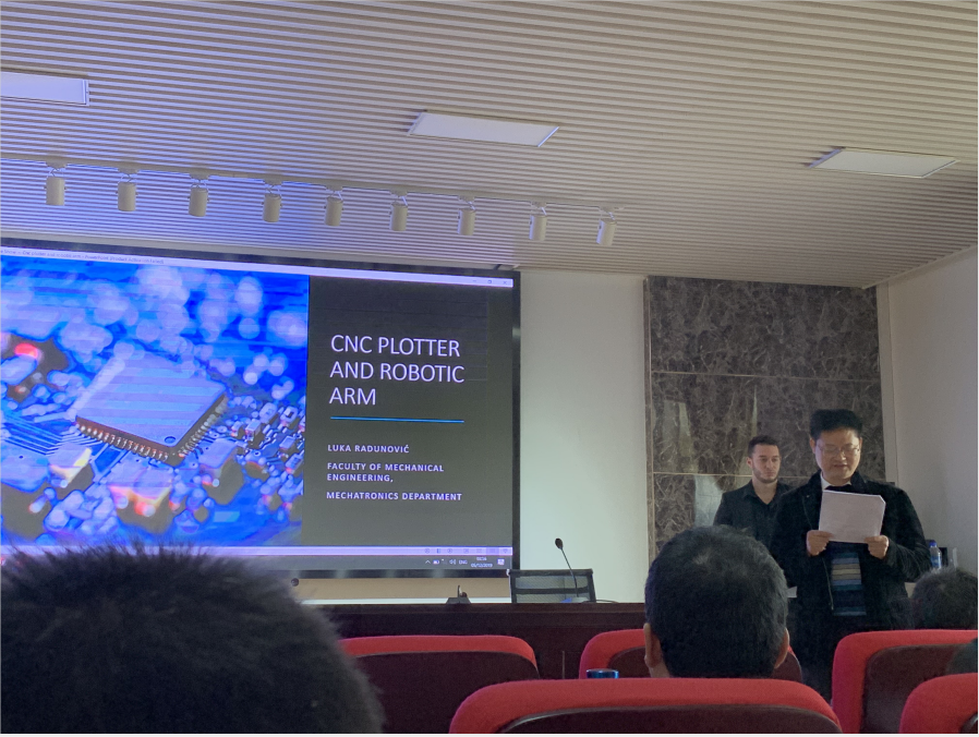 接着是Luka Rradunovic ,他来自黑山大学机械学院(Faculty of mechanical)机电部(Mechatronics)。他进行了题为CNC plotter and Robotic Arm的讲座分享,讲解了数控绘图的原理、算法实现以及从多方面分析了机械臂的使用。